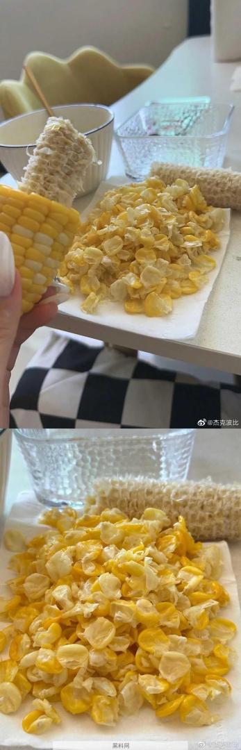 第一次见吃玉米还吐玉米皮的。