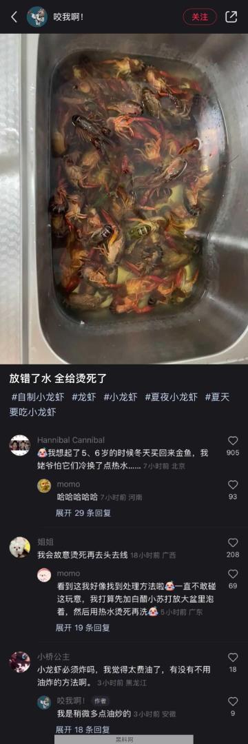 小龙虾全烫死了。