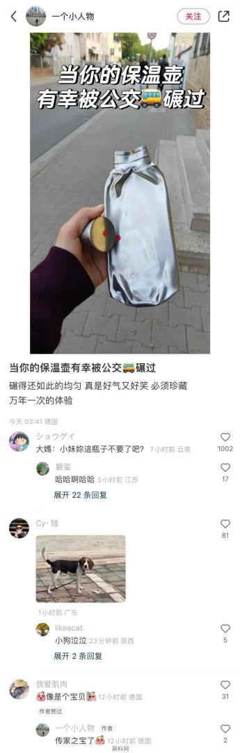 当热水壶被公交车碾了。