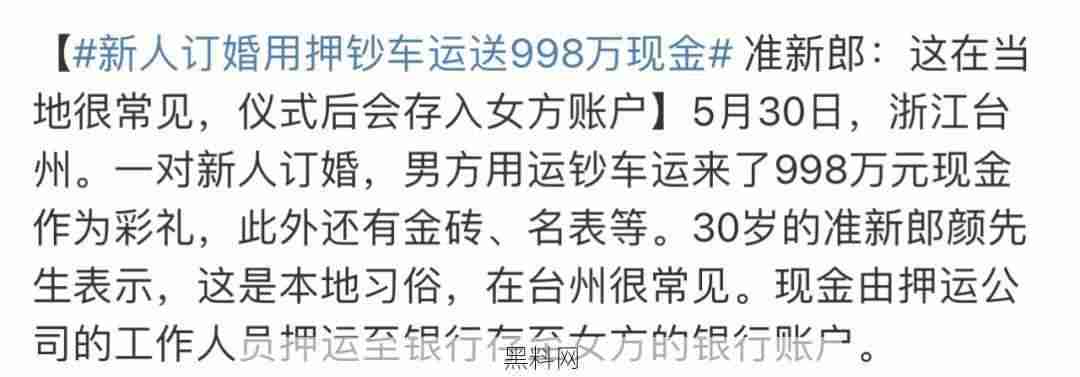 押钞车运送998万现金彩礼,