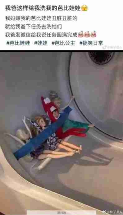 网友爸爸给芭比娃娃,