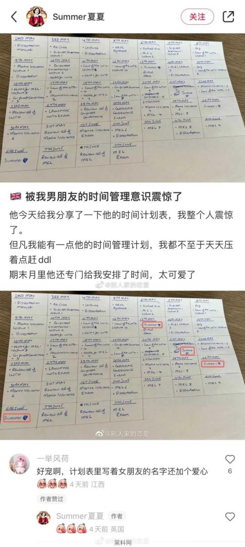 男朋友的时间管理意识。