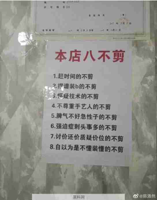理发店八不剪。