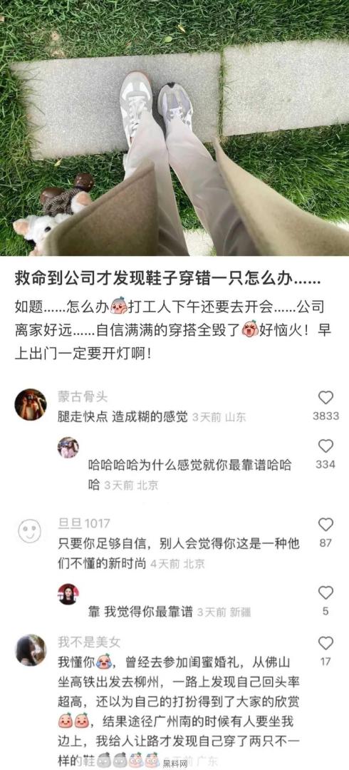 到公司后才发现鞋子穿错了。
