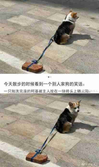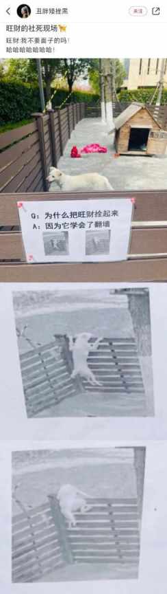 主人发图解释狗被拴的原因。