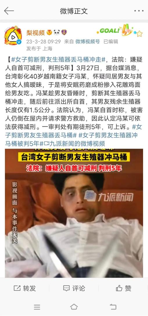 冯某就把他的生殖器剪了,
