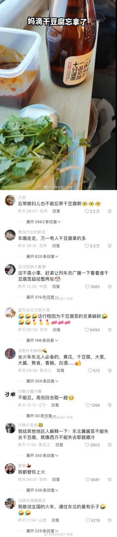 东北人坐火车不能没有干豆腐 。