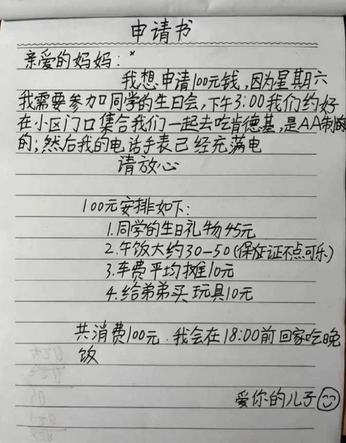 小朋友的100元申请书。