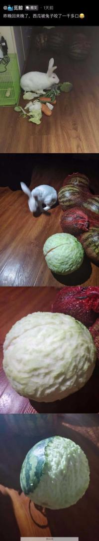 西瓜被兔子咬了一千多口。