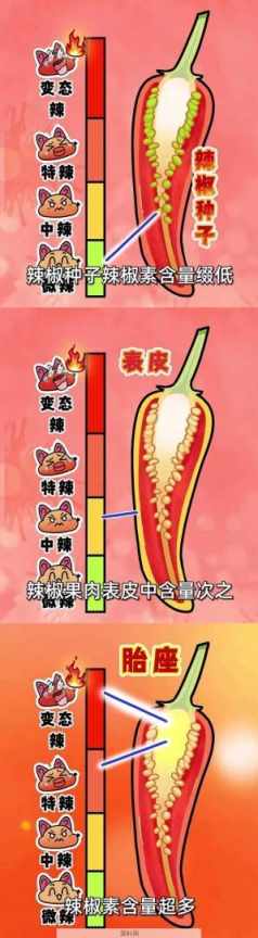 一根辣椒居然有三种辣度。